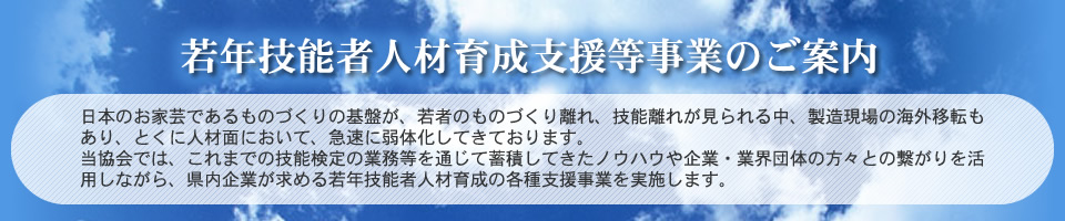 技能競技大会の競技課題等を活用しながら、広く若年技能者への実技指導を行い、効果的な技能の継承や後継者の育成を行う。