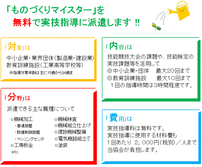 5 | 指導者 | ものづくりマイスター(仕上げ)1名 |